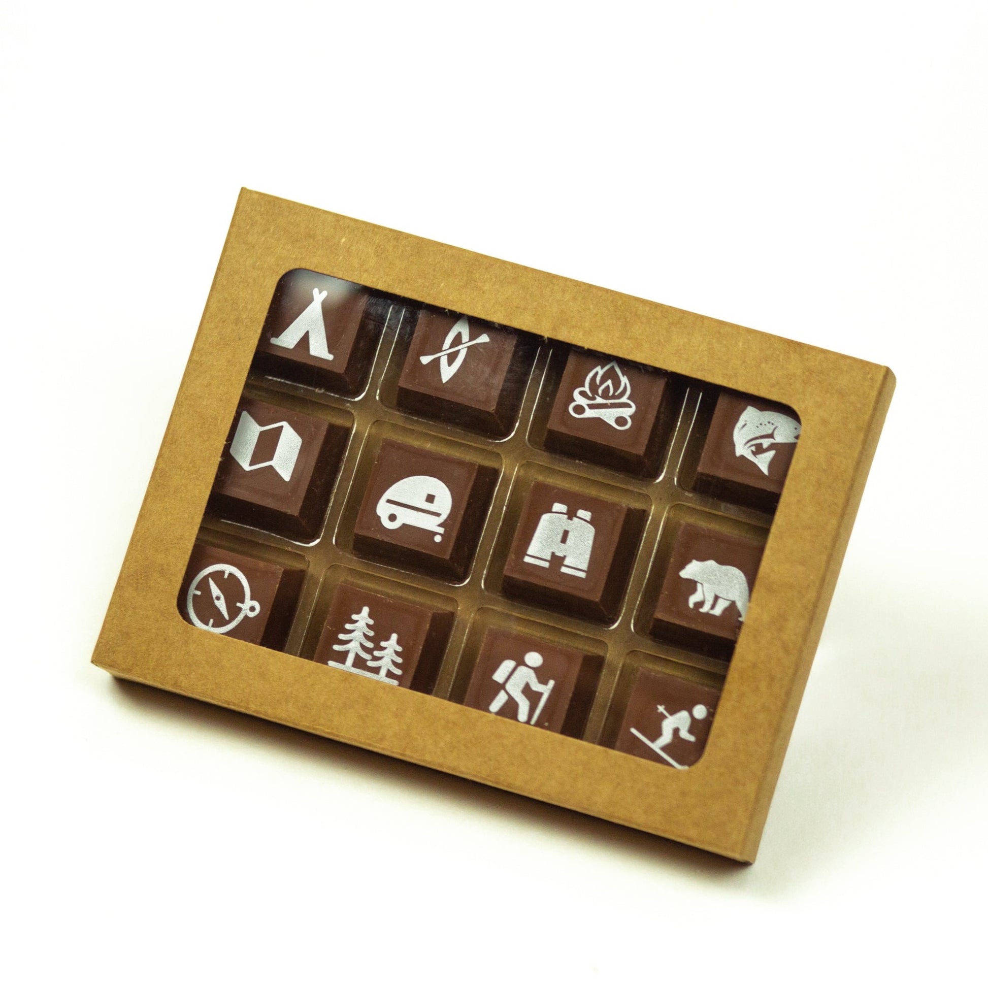 The Montana Adventure Box is inspired by all the possible adventures experienced in the last best place, this box is dedicated to the outdoor loving people. This box is filled with 12 dark chocolate pieces, each with a different adventure pattern design.
