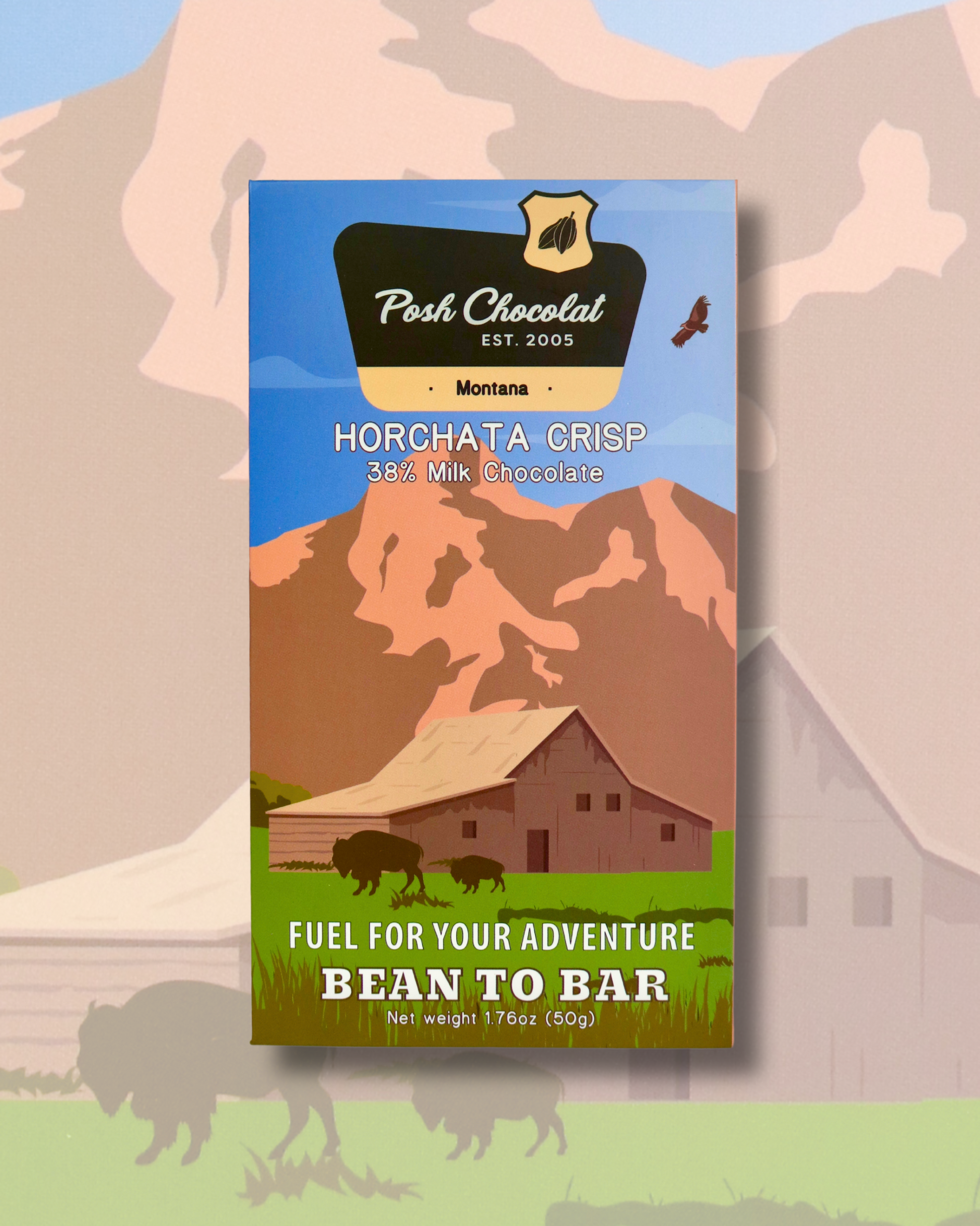 In this decadent bar, posh chocolat combines 38% milk chocolate, hazelnuts and puffed rice with horchata spices producing a very aromatic and delightful chocolate bar.